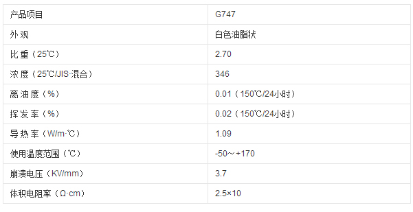 信越G-747是一種油脂狀導熱硅脂。它具有優(yōu)越的導熱性能(導熱率0.92 W/m·℃和1.09 W/m·℃),是硅樹(shù)脂密封型半導體專(zhuān)用合成油。該產(chǎn)品絕緣性能優(yōu)異,揮發(fā)性小,可薄膜涂覆。耐熱、耐寒性能優(yōu)異,適用溫度范圍廣闊。G747是把G746導熱系數進(jìn)一步提高的產(chǎn)品。
